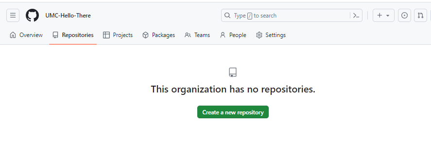 ① 생성한 Organization의 Repository 탭에서 Create a new repository를 클릭한다.