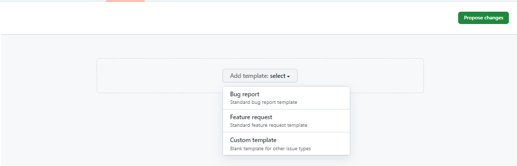 ② Add template: select 버튼을 클릭한 후 Feature request를 클릭한다.